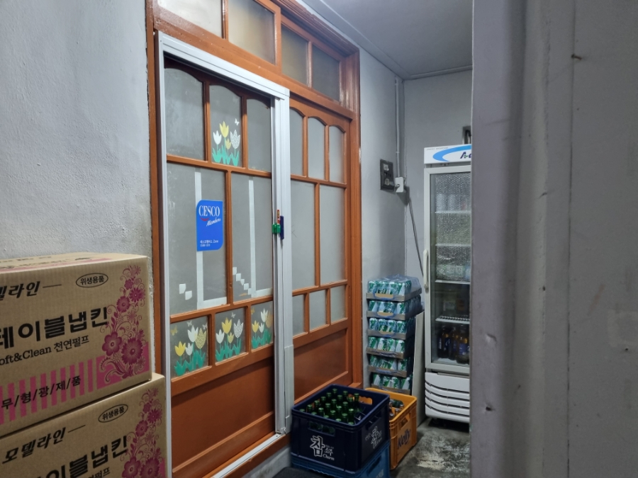 건물는 아주 오래되 정감있는 미닫이문이에요