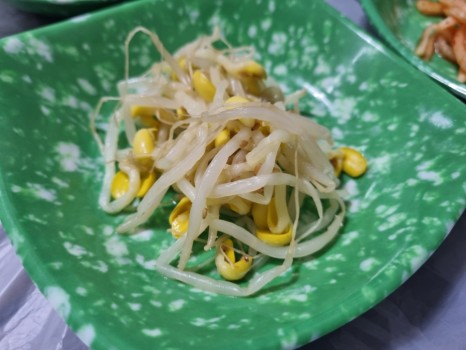 기본찬으로는 콩나물무침과 무생채, 도토리묵,어묵볶음이 나왔어요